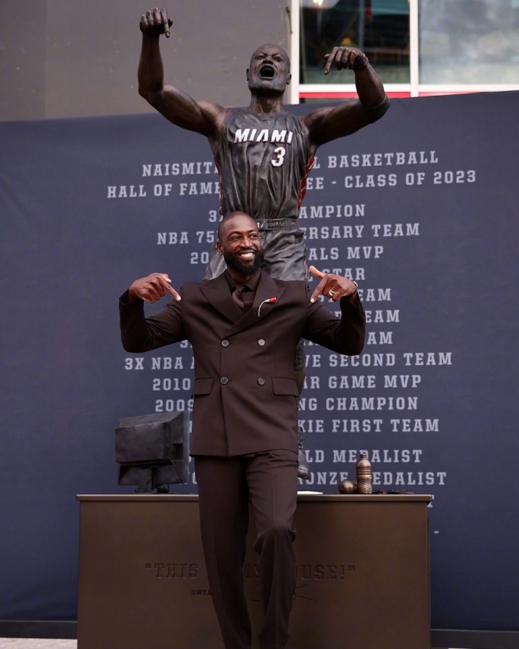 “从最初的泥塑到最终的铜制成品,我的雕像经历了巨大的变化,整个过程我都有参与。从泥塑开始,再到浇铸成铜像。在迈阿密,雕像还经过了特殊的处理,使其更加坚固。从第一次看到泥塑到最终的成品,这个过程让我感到非常震撼。雕像的表情和阴影在泥塑阶段与最终成品确实有很大的不同。我们选择了一个特别的时刻来定格,因为那是我最标志性的瞬间之一,就是"this is my house’那个瞬间。虽然很多人可能没有经历过制作雕像的过程,但对我来说,这是一个非常特别的经历。我选择了那个表情,因为它代表了我最难忘的时刻。不同于其他人的雕像,我的雕像并不是一个动作,而是捕捉到了那一刻的情感。有人说不像,乔丹的雕像也不像,不信你去看一看。”韦德表示。